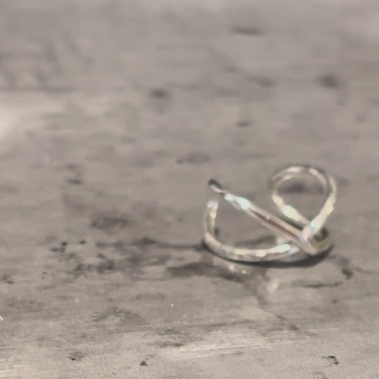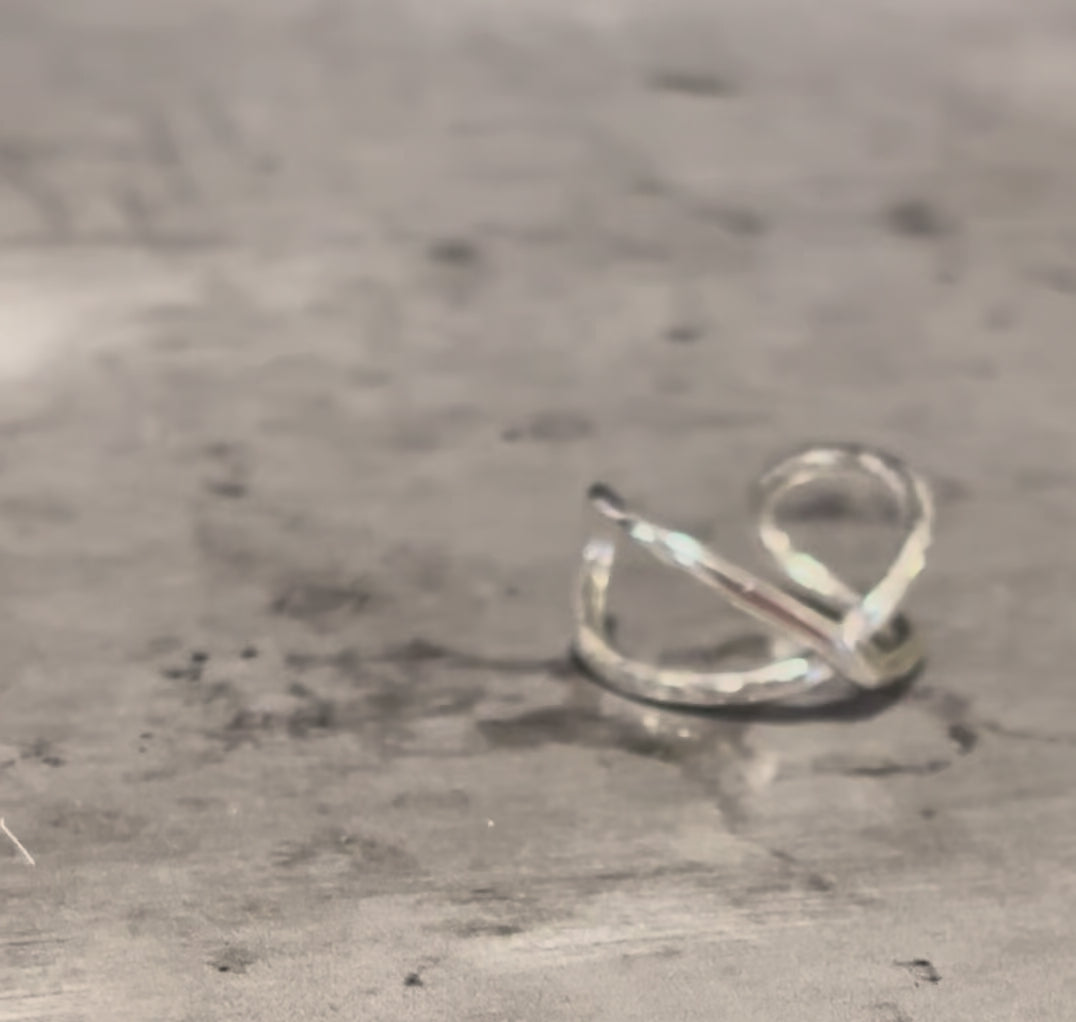 Symbolizing the union of your humanity and your divinity, this is a simple but powerful ring. A continuous loop in the "infinity" shape reminds you of your limitlessness. Half the band is hammered to represent your humanness, the other smooth to represent your divinity. Its open design allows you to adjust it to size for any finger, and its unique design hugs the finger so it cannot slip off.